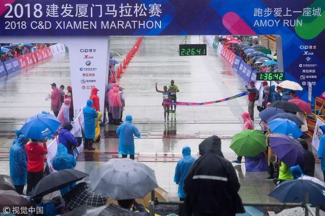 1月7日上午7:30,2018厦门马拉松在厦门国际会展中心前准点开跑。受冷空气影响,当天的厦门,倾盆大雨。 但仍有2万多名勇士逆流而上,永不言弃。
